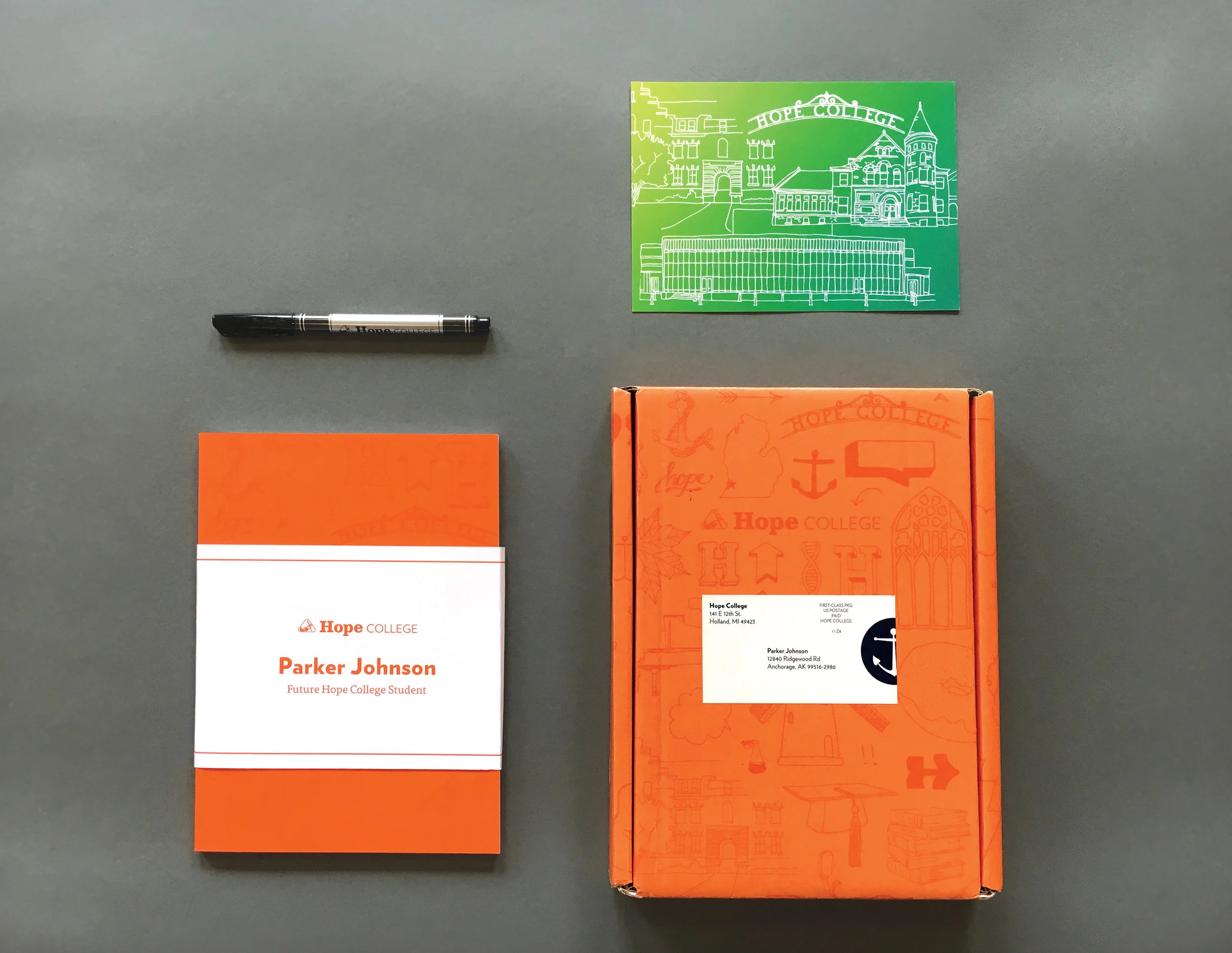 Hope College and mStoner were honored with a 2017 UCDA Design Award of Excellence for the suite of integrated admissions materials. Admitted students posted unboxing videos and images on social media when they received the acceptance gift. And Fellinger (project lead on client side) reports that Hope staff members are “swooning” over the viewbook, even stopping her in the grocery store to tell her how much they love the piece.
